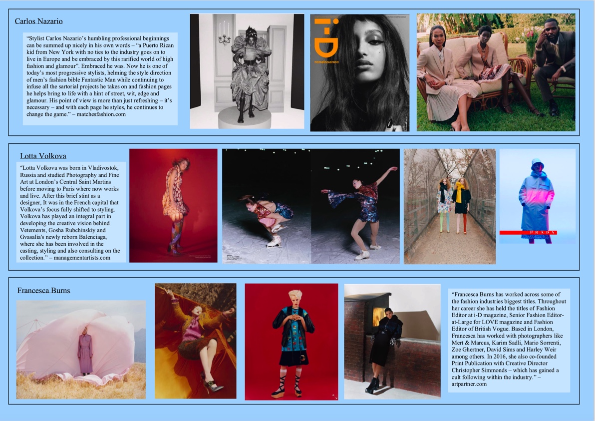 I noted these photographers for their interesting compositions and the way they use light and tone to focus on certain aspects of the model/look.